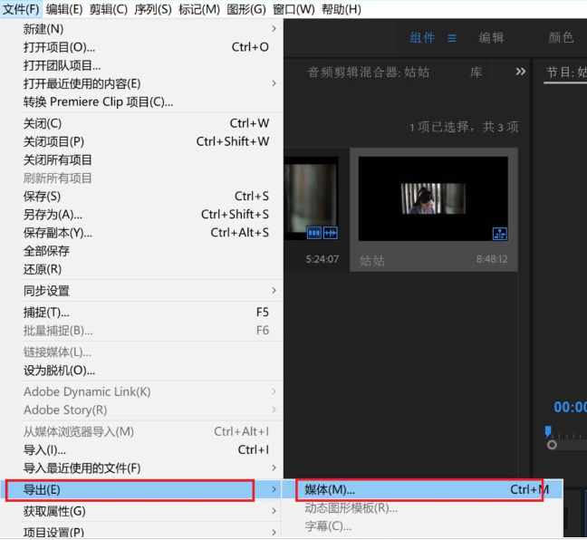 设置完成,点击菜单栏的【文件】——【导出】——【媒体】,保存视频。