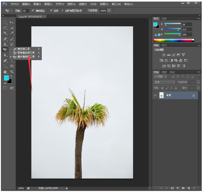 在左侧工具栏中点击魔术橡皮摖工具,如图,