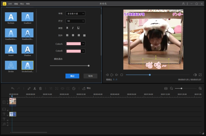 双击文字素材,可以更改内容、颜色,如图,