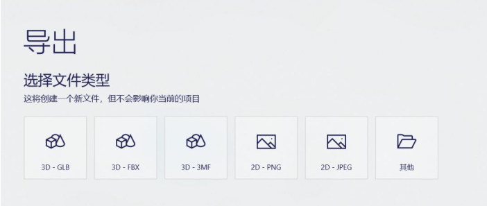 做完之后,选择右上角的展开菜单,点击【导出文件】,这里提供了3种模型格式,选择第一个,
