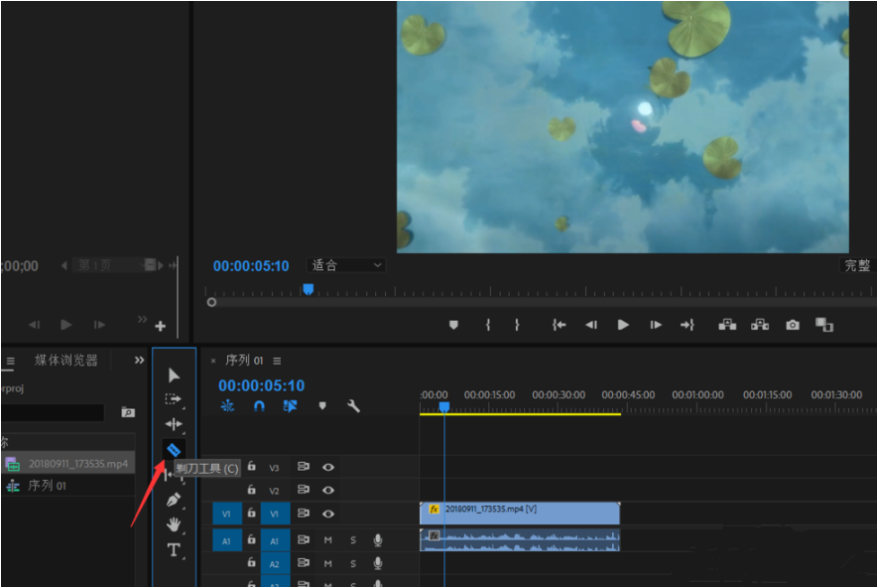 点击【剃刀工具】,或者直接按住C键,切除视频中多余的部分,