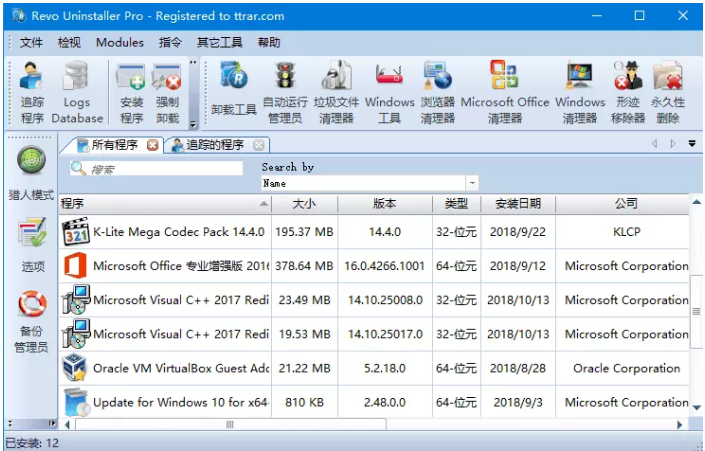 Revo Uninstaller Pro是一款非常强悍的软件卸载工具,能够代替Windows系统中的“添加/删除程序”,提供了四种卸载模式(内建、安全、稳健、高级),可以干净卸载软件。除此之外,Revo Uninstaller还支持清理垃圾文件、删除Office临时文件、清除上网记录、系统启动项管理等功能,超级nice。