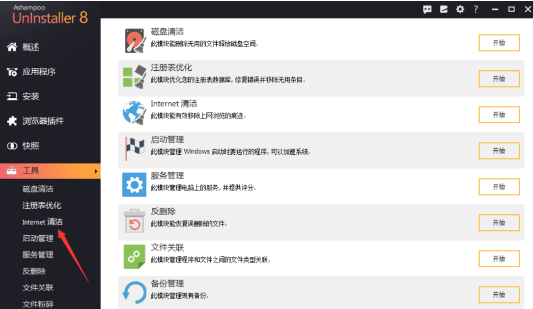 如何利用Ashampoo UnInstaller清理internet缓存?
