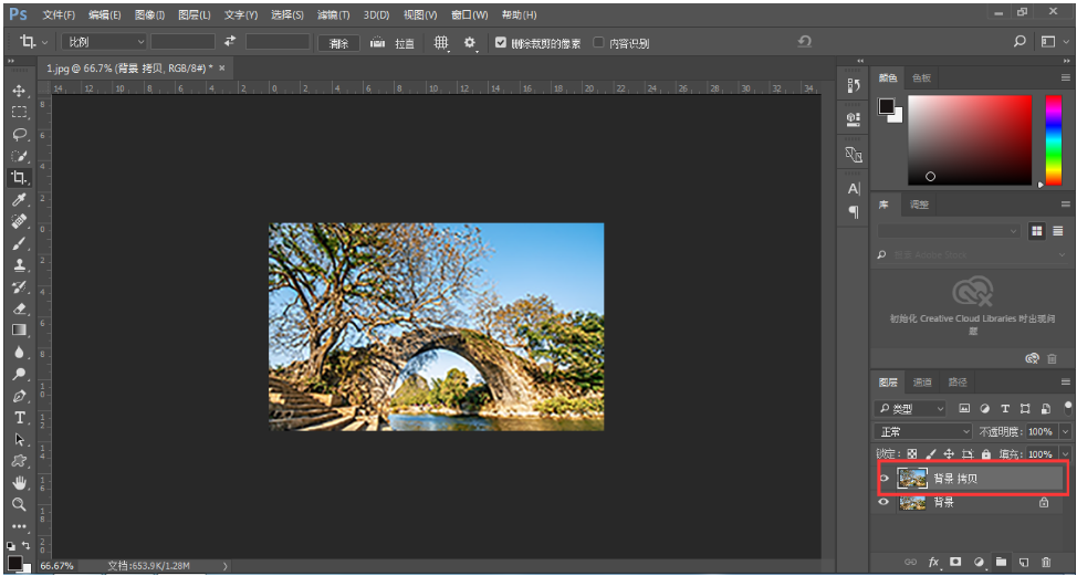 打开Photoshop软件,导入一张事先准备好的图片,复制图层,