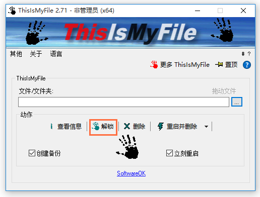 提示:最好使用管理员权限运行ThisIsMyFile,可以将解锁能力发挥到最强。
