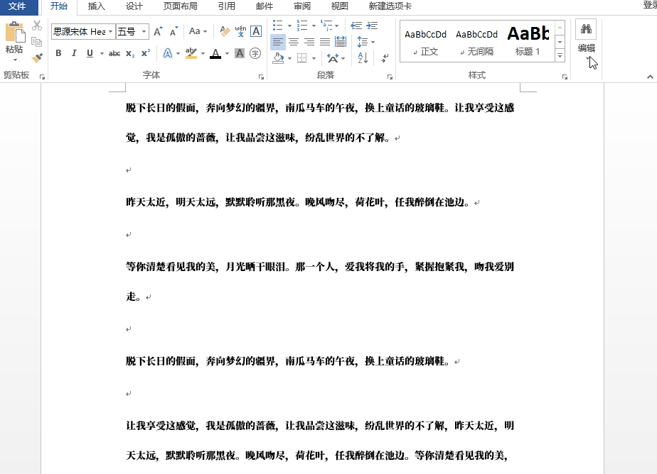 点击工具栏右上角的【编辑】——【替换】,把全部空格由【^w】替换为空,然后点击全部替换,所有的空格都消失了!