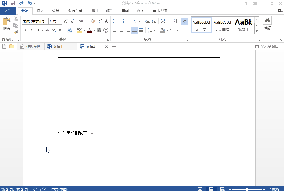 插入表格之后,最后面的空白页一直删不掉,这是我们经常会遇到的一个问题,如图!