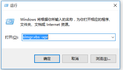 按快捷键【Win+R】,打开运行窗口,输入【slmgr.vbs -xpr】,点击确定,