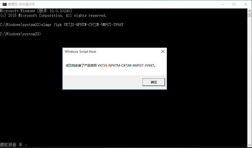 打开命令提示符窗口,依次输入以下命令,激活Windows 10专业版系统,