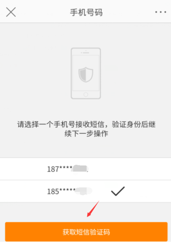 选择需要接收验证码的手机号,点击【获取短信验证码】,