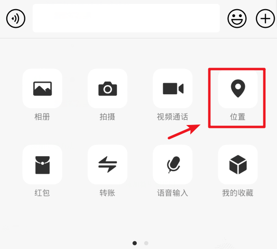 进入聊天界面,点击输入框后面的【+】,弹出选项,点击【位置】,