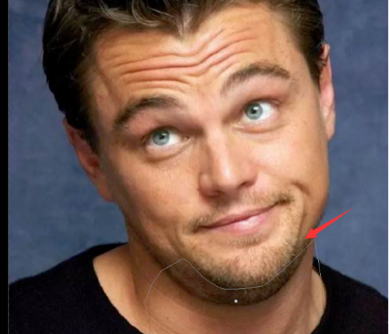 在左侧工具栏中选择钢笔工具,将人物双下巴和脖子区域勾选出来,如图,