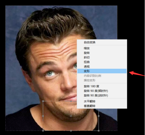 然后按快捷键【Ctrl+T】,然后右击图片,点击【变形】,