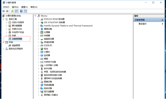 在桌面右击【计算机】,点击【管理】,进入计算机管理界面,如图,找到【设备管理器】,