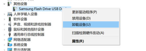 找到之后,右键点击【卸载设备】,然后拔下U盘,重新插入就可成功识别了。