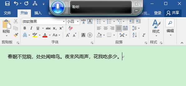 这时你可以对着麦克风说话,说话时麦克风图标会根据声音一闪一闪,同时,在Word文档中会出现通过语音识别得到的文字,