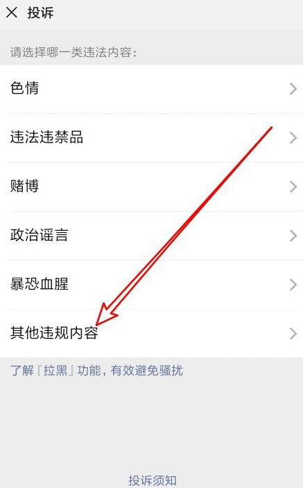 进入新的界面,点击【其他违规内容】,