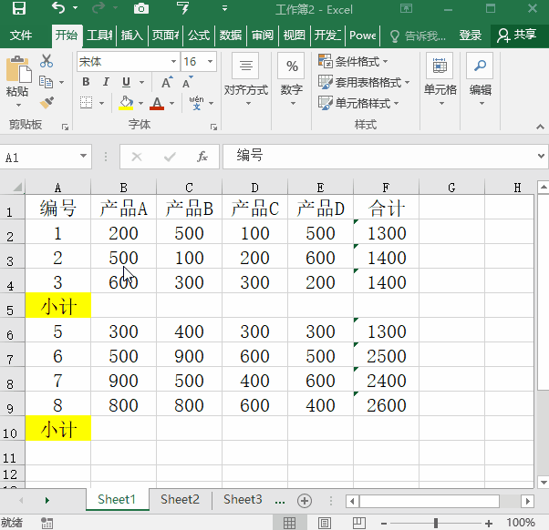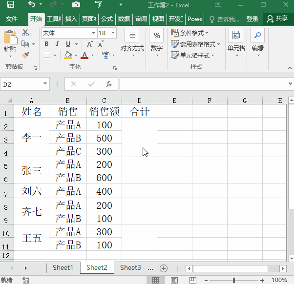 三、合并单元格求和