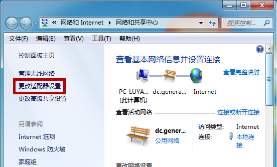 进入界面,在左侧菜单栏中找到【更改适配器设置】功能并点击,如图,