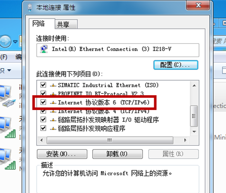 如图,找到【Internet协议版本6】,取消勾选,然后点击【确定】,此方法可以有效降低Windows 7系统的网络延迟。