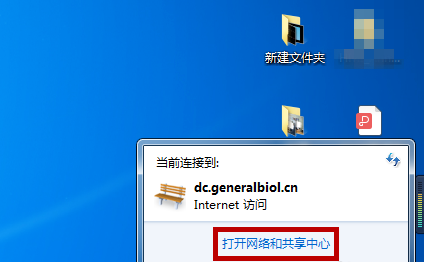 鼠标点击网络连接图标,选择【打开网络和共享中心】,