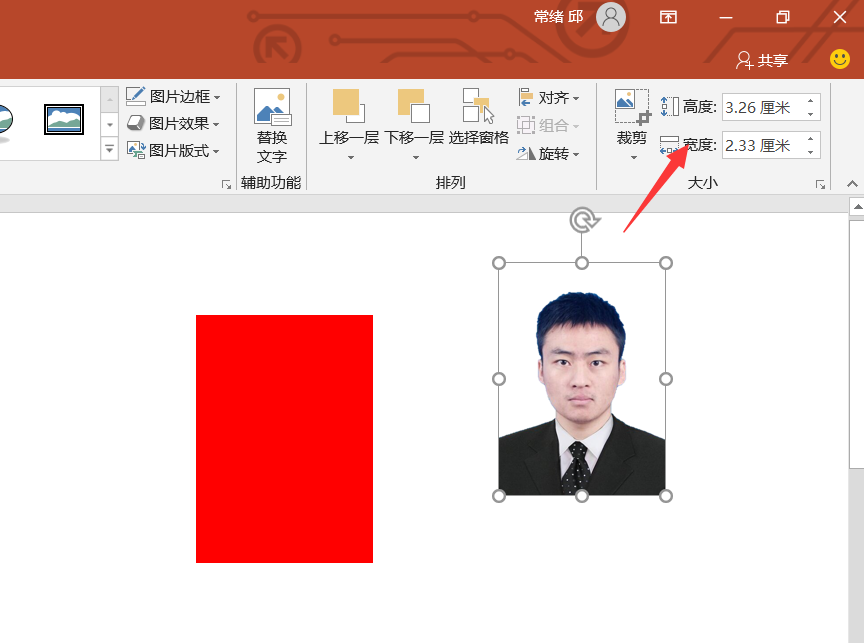 选中图片,调整的背景,设置图片高度为3.5厘米,宽度为2.5厘米,