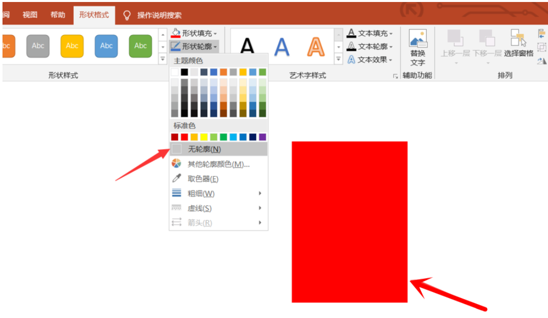 继续选中矩形形状,点击 【形状格式】——【形状轮廓】,勾选【无轮廓】,