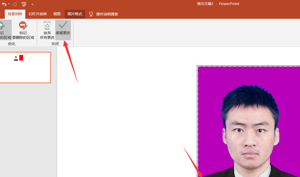 将背景全部删除,只保留人物主体,点击【保留更改】,