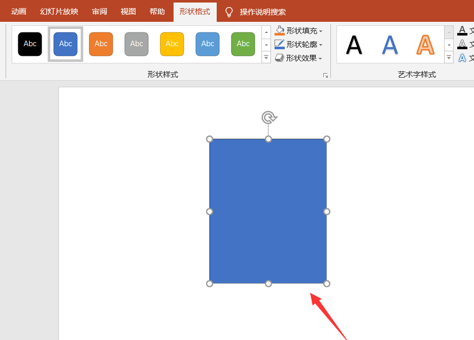 选中矩形形状,在菜单栏中点击【形状格式】——【形状填充】,设置标准色为红色,