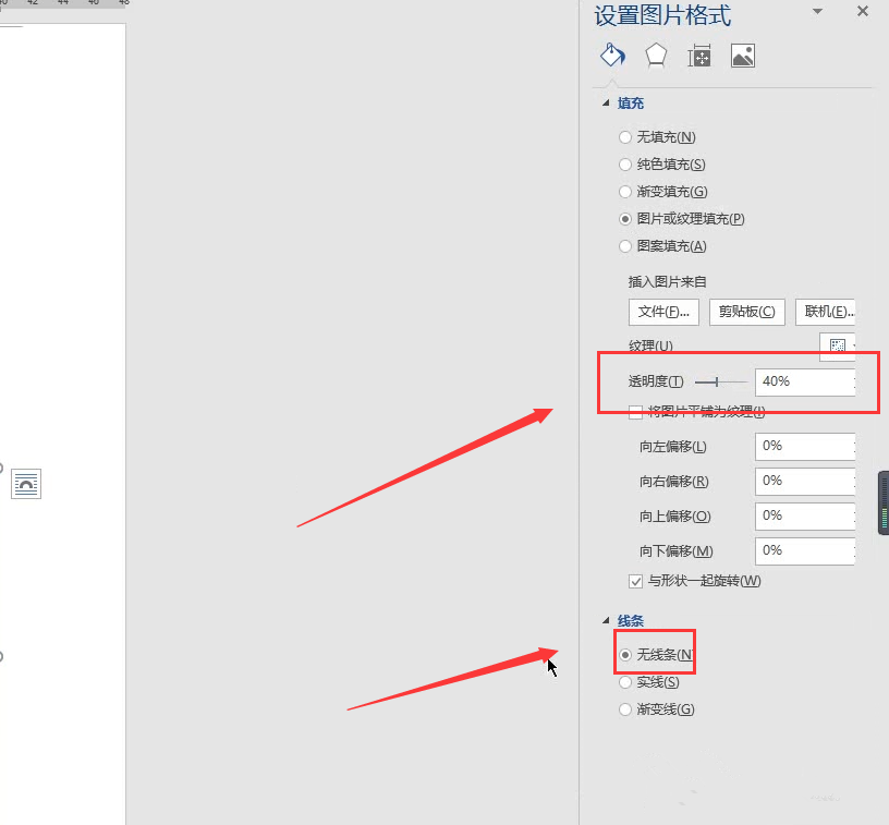 然后调整透明度,设置线条,勾选【无线条】,