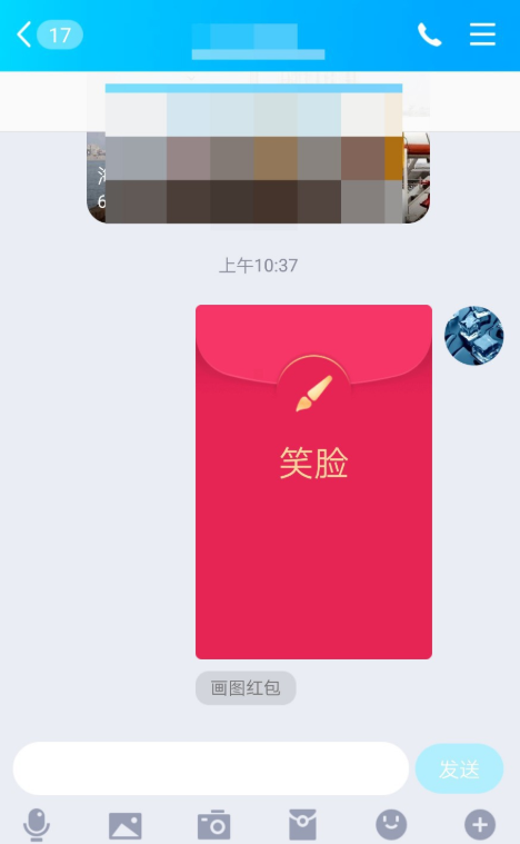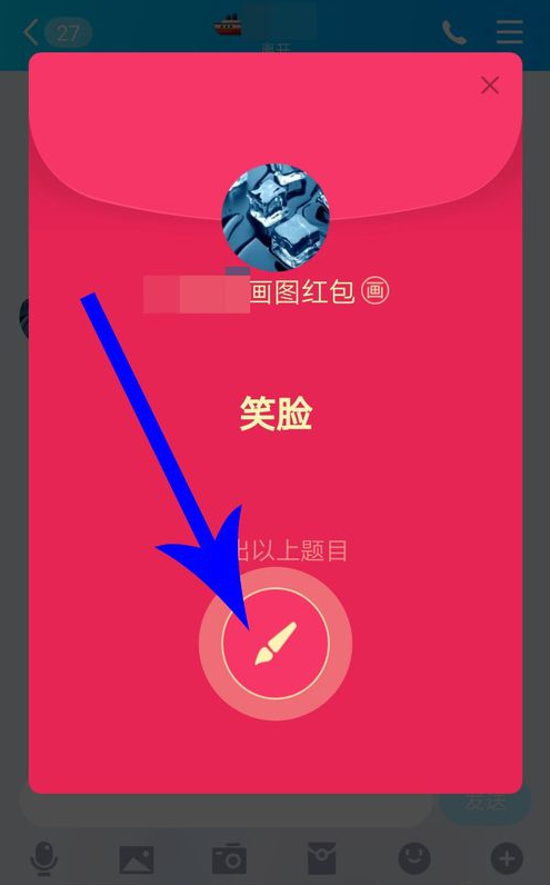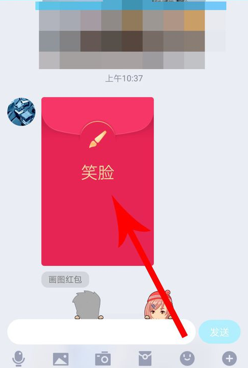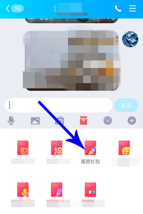 首先打开手机QQ,任意点击一个好友,进入聊天窗口,点击下方的红包图标,然后点击【画图红包】,