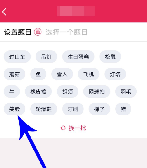 进入画图红包界面,开始出题,点击【选择一个题目】,这里选择笑脸,