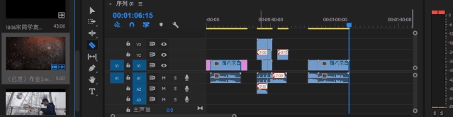 导入Pr的视频素比较多,想在时间线上找到对应的素材就有些困难了,这时可以按F键,在素材监视器上找到对应的帧。
