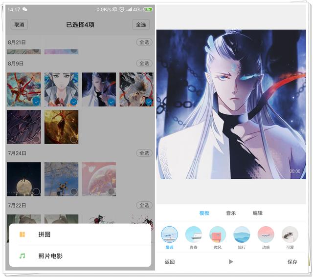 在相册中选择自己喜欢的照片,然后点击【创作】——【照片电影】功能,接着选择视频模板和音乐,点击【保存】即可,是不是很简单呢?