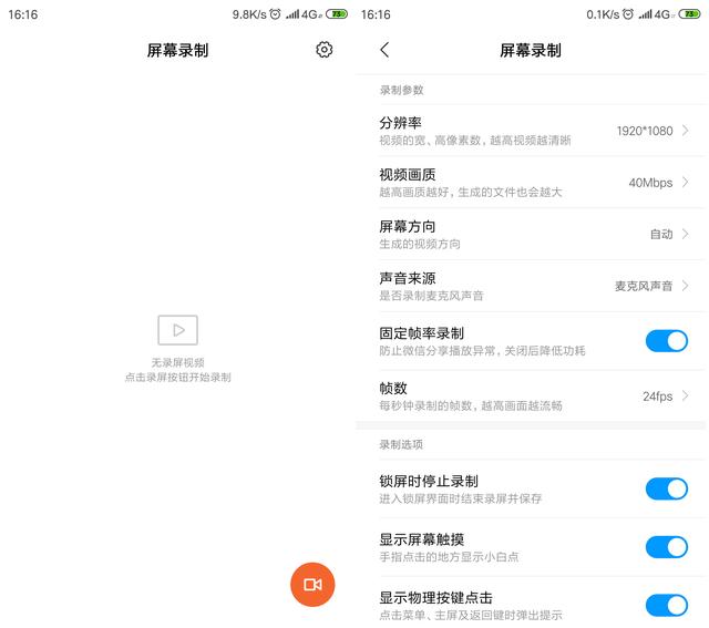 小米手机自带了录屏功能,在桌面上点击【屏幕录制】,进入界面,然后点击右上角的【设置】按钮,设置分辨率、视频画质等参数,然后点击右下角的按钮,即可开始录屏。