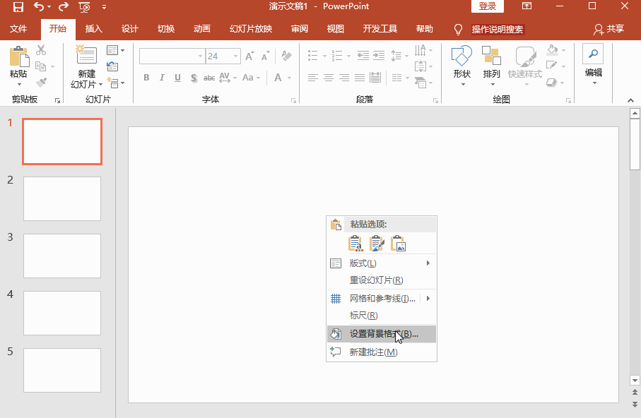 注:你也可以点击页面中的【自定义】,选择【设置背景格式】,修改主题背景颜色。