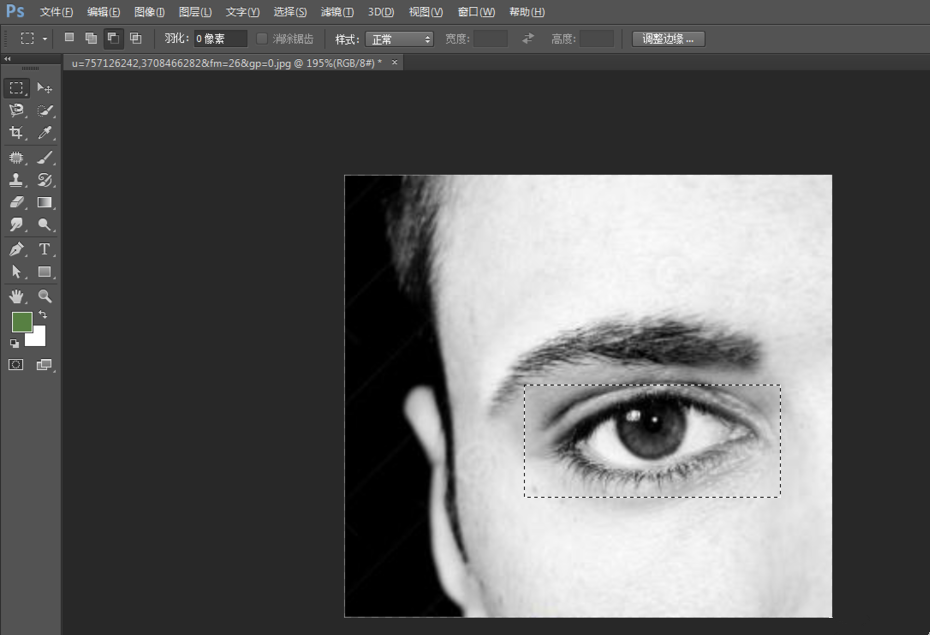 打开Photoshop软件,导入需要处理的图片,按快捷键【ctrl+j】,复制图层,用矩形选框工具框选中眼睛,