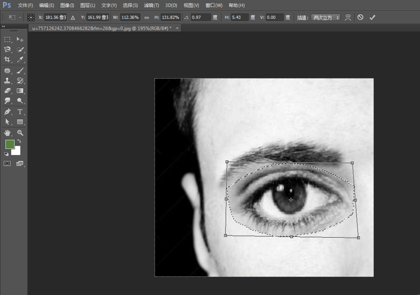然后进行自由变换,通过拉动锚点来调整眼睛大小、形状,