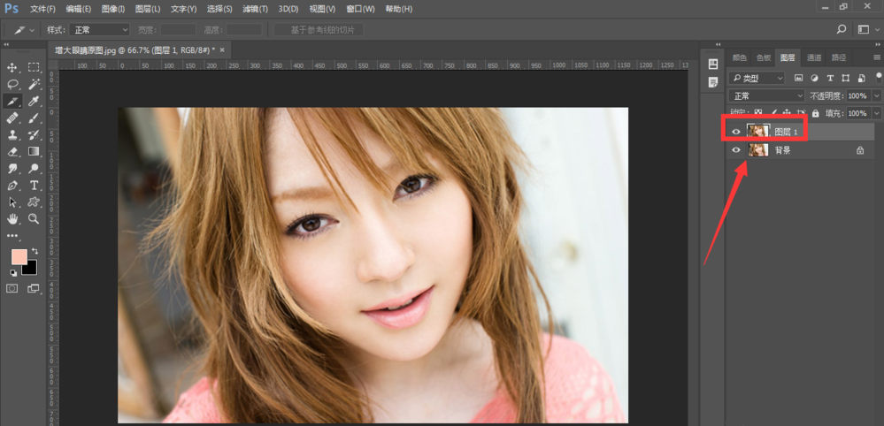 如何使用PS软件调整人物眼睛大小?