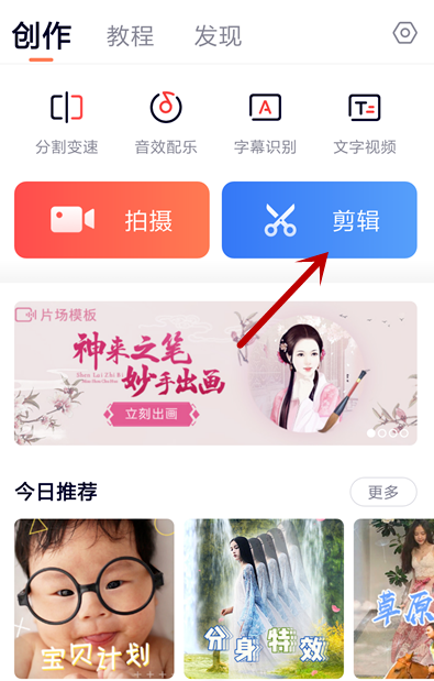 打开快影APP,进入主界面,点击【剪辑】功能,