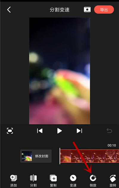 导入视频,进入剪辑界面,在底部找到【倒放】功能并点击,