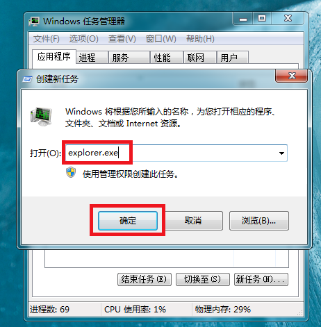 弹出对话框,输入explorer.exe命令,按回车键,即可成功显示桌面标题。