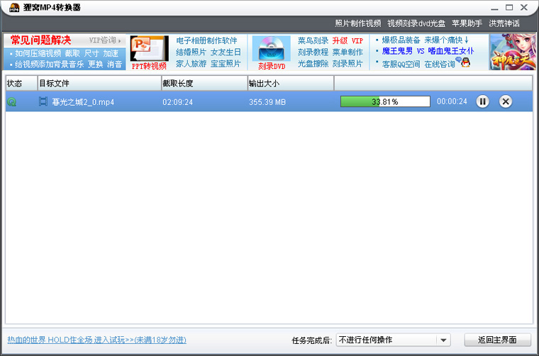 设置完成,点击确定,回到转换器主界面,点击右下角的按钮,开始转换视频格式,