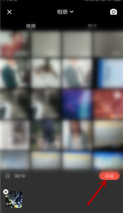 进入手机相册,选择需要处理的视频,点击【完成】,