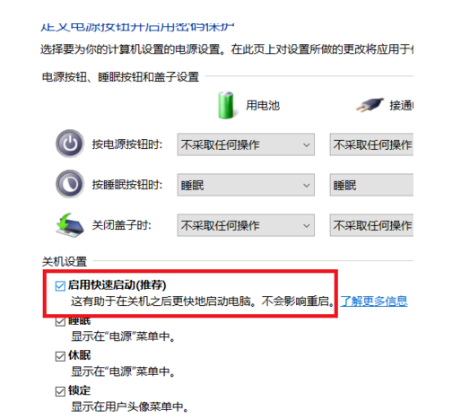 进入详细设置界面,勾选【启用快速启动(推荐)】,最后点击【保存修改】,即可开启Win10系统快速启动功能,提升电脑的开机速度。