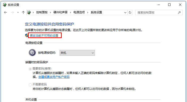 然后点击【更改当前不可用的设置】按钮,如图,