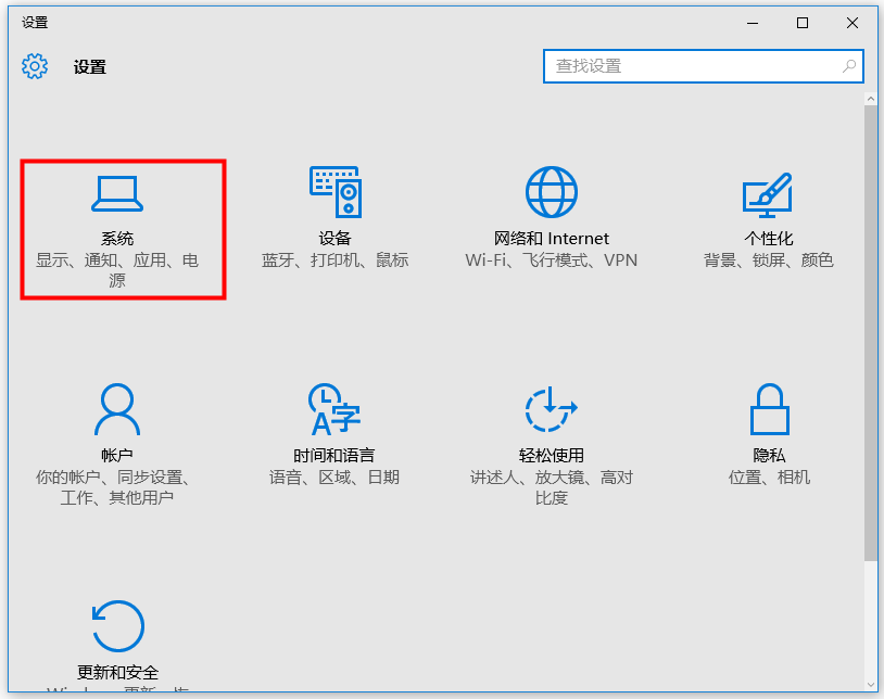 进入设置界面,点击【系统】选项,如图,