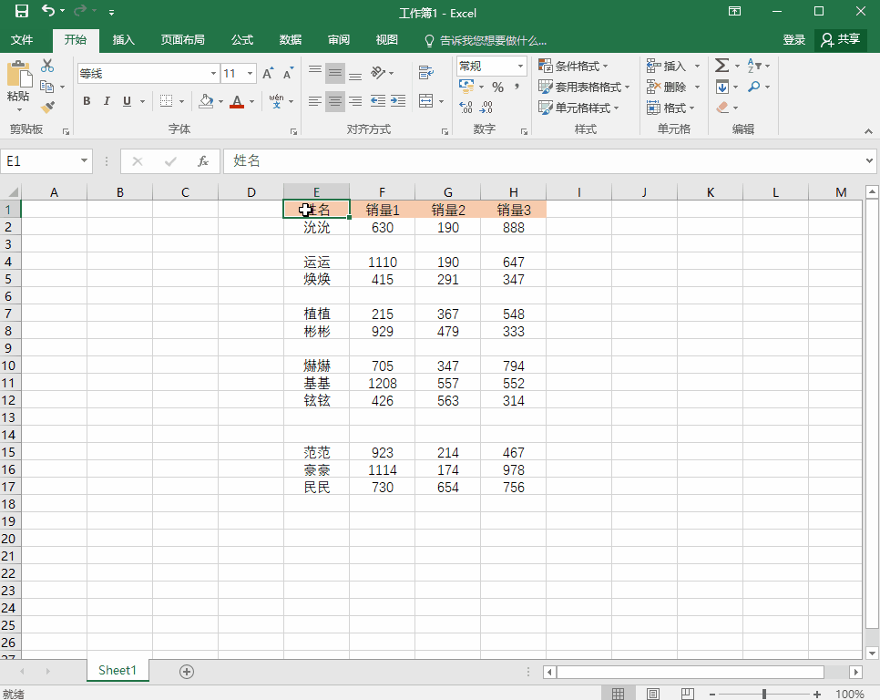 如图,Excel表格中有很多空格,如果你选择逐一删除,必然会浪费不少时间,其实只要动动脑筋,即可一次性删除全部空格!
