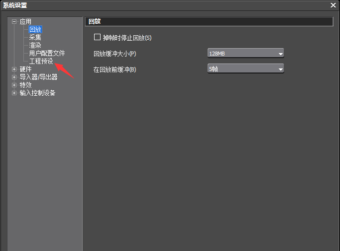 进入系统设置窗口,点击左侧的【工程预设】选项,