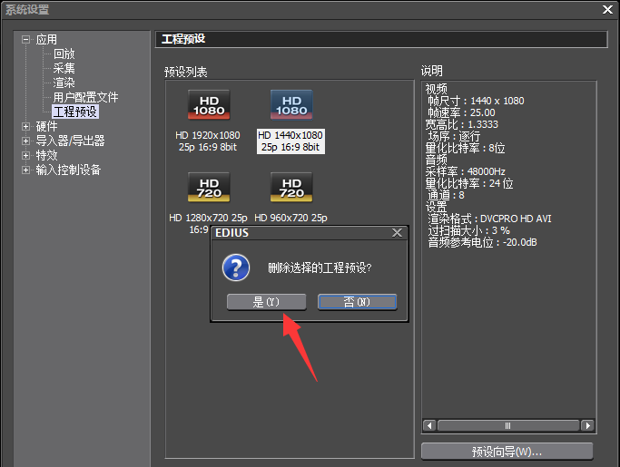 EDIUS如何删除工程预设?